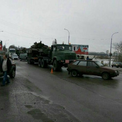 Так, согласно сообщеню местной Нацполиции, около 9.50 на пересечении улицы Леся Сердюка и окружной дороги автомобиль Hyundai Tucson столкнулся с тягачом из колонны военной техники, который перевозил такнк. В результате аварии никто не пострадал.