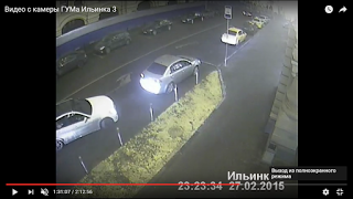 Видим как мерседес прибывает на Ильинку в 23:23:33 по таймеру камеры.