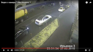 За этой же картиной, мы наблюдаем теперь с камеры ГУМа, Ильинка 3, время 23:27:34 (не совпадение с регистратором Лексуса составляет 9 сек и 12 сек с камерой ТВЦ).