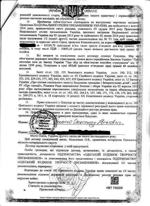 "03.12.2015 г. вопреки протестам членов Союза полностью подконтрольные члены Правления НСПУ (неподконтрольных на заседание Правления просто не приглашают) принимают решение о продаже имущества в Одесском Доме творчества, что полностью противоречит п. А) ст. 4.14 Устава НСПУ", – приводит Вано Крюгер еще одну выдержку.