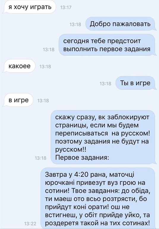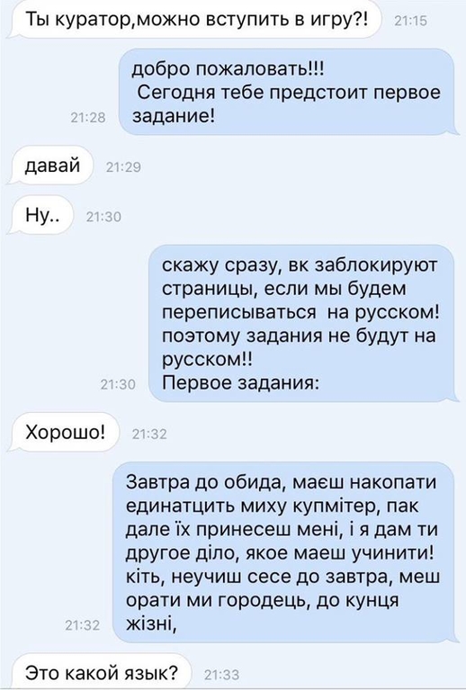 Зазначається, що чоловіка з прізвищем Кіт сприйняли за куратора смертельної гри. Спочатку він ігнорував повідомлення від підлітків, у яких вони просили дати їм завдання, а потім вирішив пожартувати.