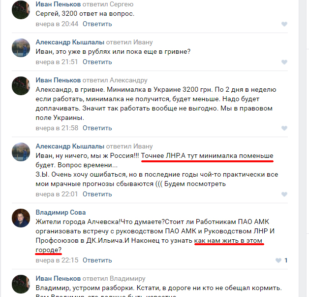 Местные жители жаловались, что у них нет средств ни на продукты питания, ни на оплату коммунальных услуг, так как зарплату они не получали уже три месяца. Последняя выплата была 7 марта в размере 75% зарплаты за январь. Как сообщается в местных паблках Алчевска в “ВК”, изначально заводчане пришли к профсоюзу “Металлургов”, который возглавляет Олег Нагорный. Но, по словам митингующих, глава профсоюза не только отказался их принимать, но и почему-то забаррикадировался в здании.