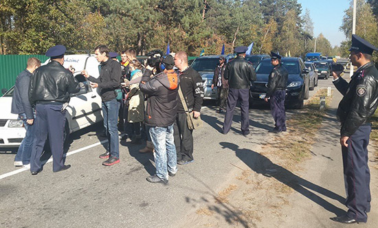 Инспекторы ГАИ КОБРА не пускают активистов Автомайдана к дому Порошенко