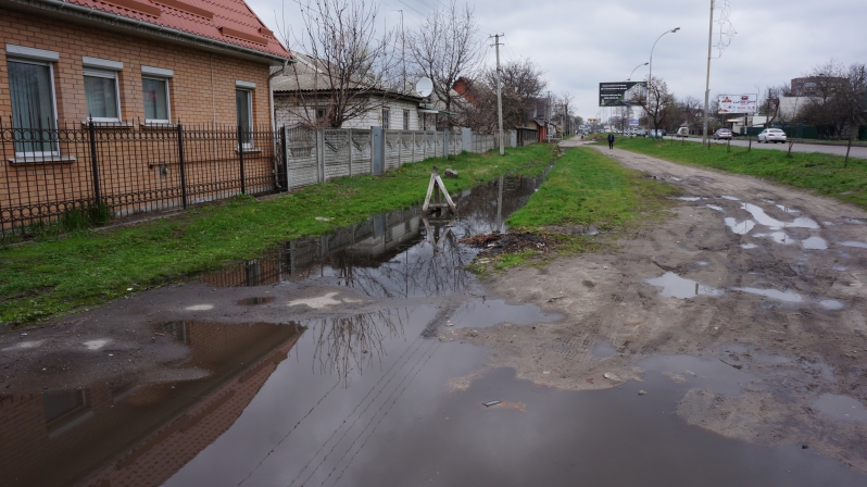 Оцінити масштаби пошкоджень броварських вулиць у нас не вийшло, так як на так давно пройшов дощ, і вони вкрилися гігантськими калюжами. У деяких місцях калюжі настільки великі, що обійти їх можна тільки по проїжджій частині. Особливо «радіють» місцеві велосипедисти, яких в Броварах чимало.
