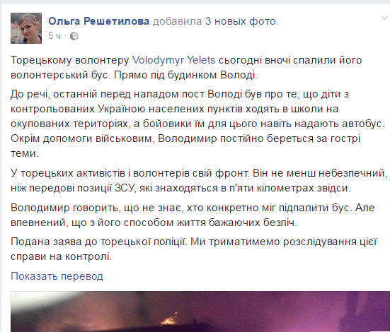 Теги: Рыбак ИгорьКонтрабанда в зоне АТОДНРШкиря ИгорьЕлец ВладимирволонтерыПоджогФорд-ТранзитТорецк