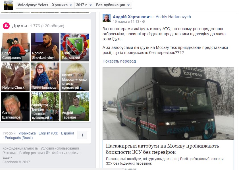 О том, что пассажирские автобусы Москва — Торецк проезжают блокпосты ВСУ без проверок в марте заявлял бывший командир добровольческого батальона Николай Колесник.