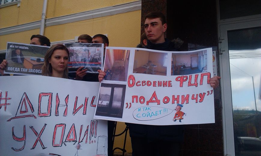 Акции протеста начались перед пресс-конференцией Донича, где он собирался рассказать о начале вступительной кампании, передает “Диалог.UA”.
