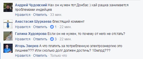 В соцсетях идут жаркие споры по поводу блэкаута, некоторые пишут, что со стороны Украины это правильная мера, предлагая навсегда забыть о Донбассе, который так стремился и хотел в "русский мир".