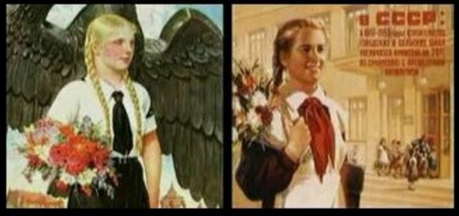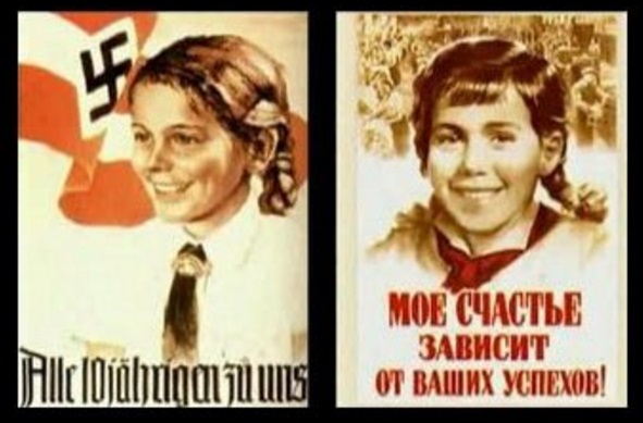 Автор микроблога "Мид Роисси" в Twitter опубликовал рядом две символики. На обоих изображены орлы в профиль. На постере "Юнармии" нарисована звезда, а на нацистском – крест и руны "СС".