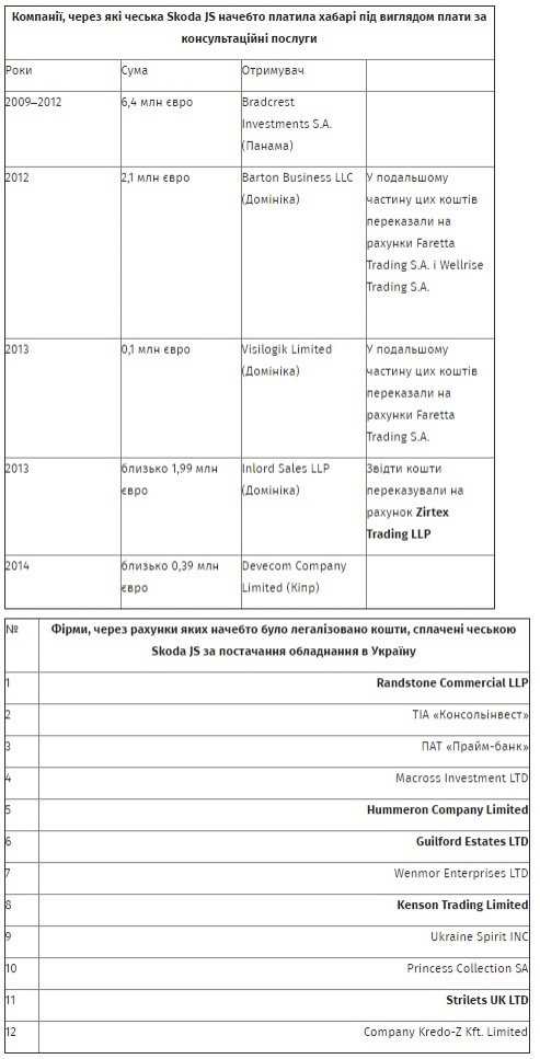 Завдяки цим останнім судовим двобоям між адвокатами та детективами у судовий реєстр потрапили важливі факти з кримінального провадження. Саме вони можуть свідчити про справжні масштаби бізнес-інтересів отримувачів вигоди від європейського постачальника. Йдеться про перелік фірм, які, за версією НАБУ, залучалися до сплати хабара компанією Skoda JS за право постачати своє обладнання в Україну. Як встановив «Главком», ці структури причетні й до низки інших гучних скандалів в Україні.