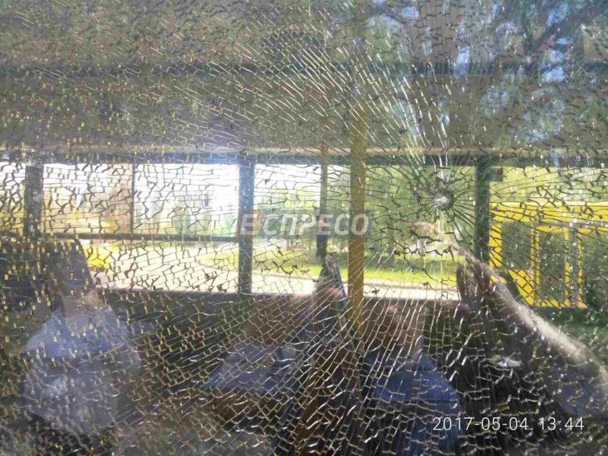 В автобусі побито п’ять вікон, потерпілих немає.