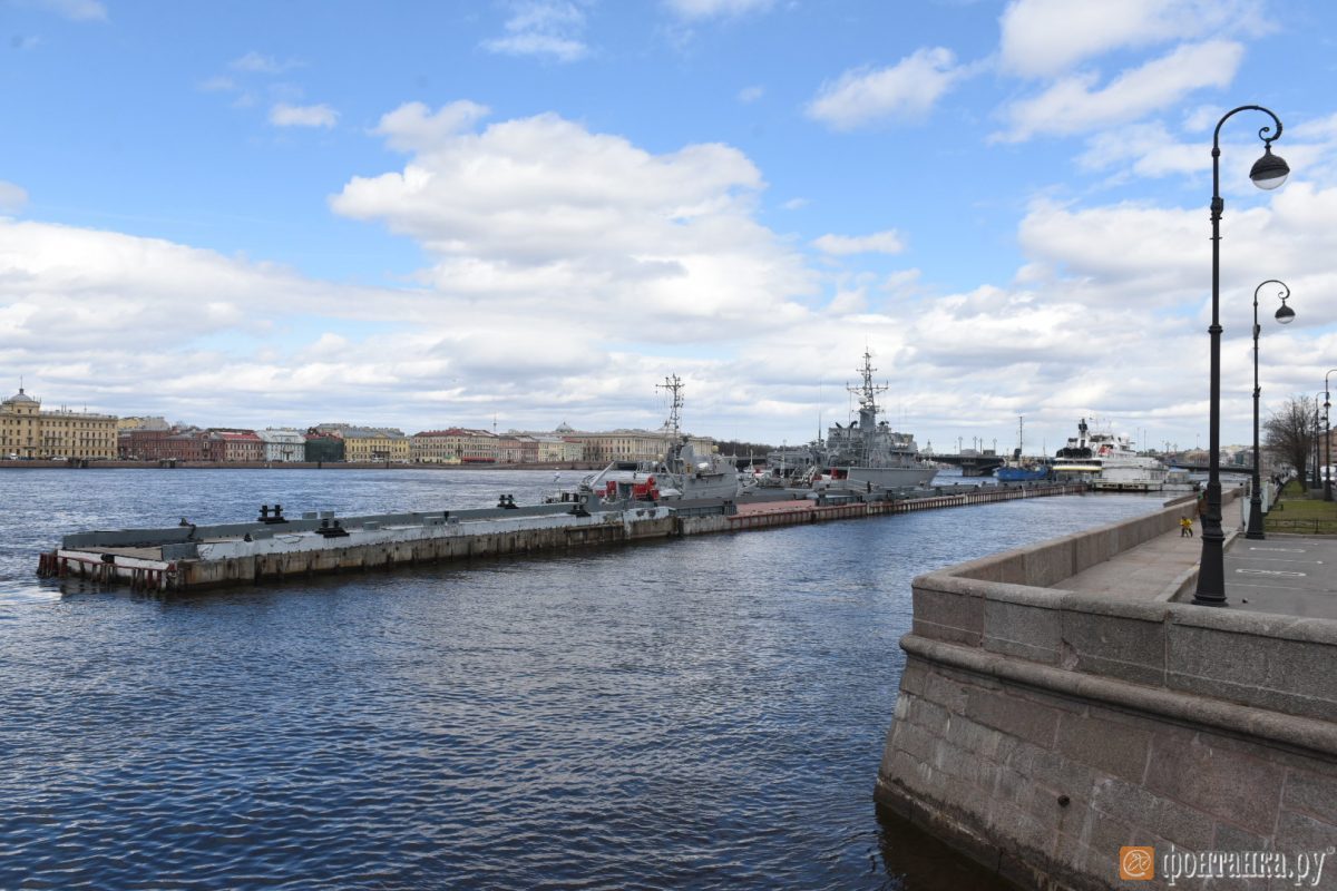 В субботу утром акватория Невы между Дворцовым и Благовещенским мостами оказалась пустой, хотя еще накануне там стоял на рейде отряд боевых кораблей Балтфлота, прибывших в город.