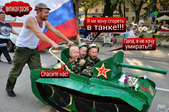 В военную форму одели даже детей. Некоторые умудрились сделать из колясок подобие военной техники.