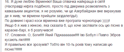 Номер участницы от Бельгии по его мнению имел общие черты с исполнением Адель, а конкурсант из Черногории показался довольно веселым, достойным участия в финале.