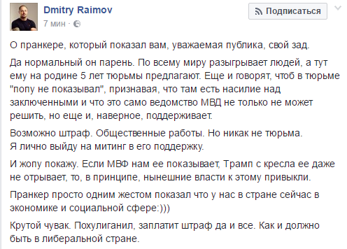 Украинскому пранкеру Виталию Седюку, который во время выступления Джамалы на Евровидении-2017 выбежал на сцену и показал голые ягодицы, светит пять лет тюрьмы.