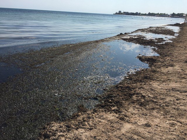 В воду зайти не возможно , водоросли пузырятся , запах стоит невыносимый,на пляжах грязь ,как болото pic.twitter.com/rCkXcGddzN