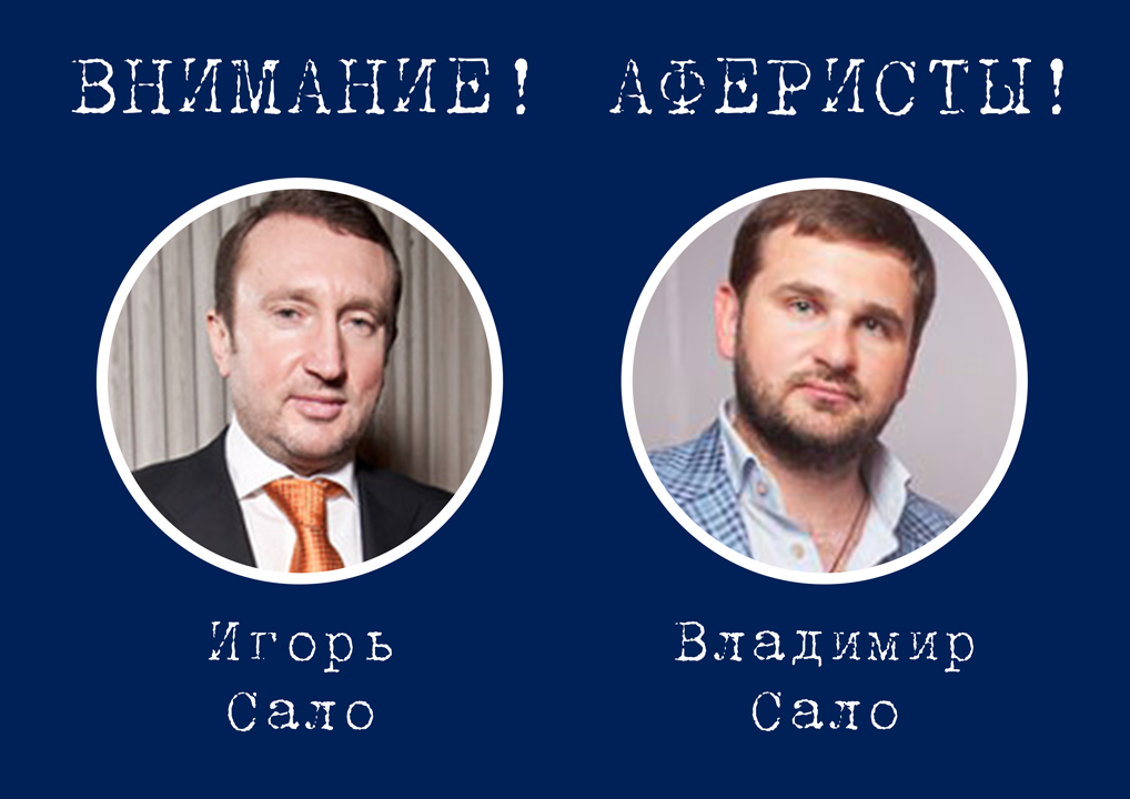 Но, увы, все эти деньги, были обманным путем вытянуты семьей Сало из бюджета Украины и направлены против нее же. А сами Игорь и Владимир Сало не только выполняют «рабочий» долг, подрывая экономику Украины и усиливая террористическую деятельность на Востоке страны, но и сами «греют руки» на своих мошеннических схемах.