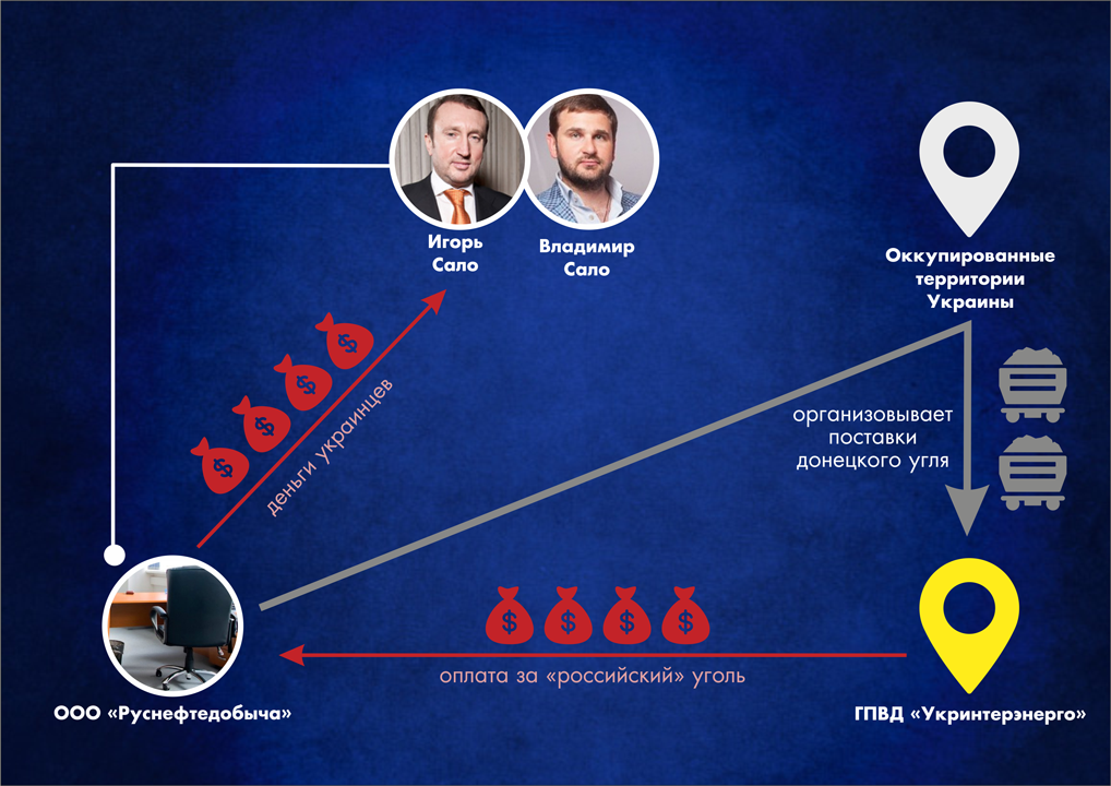 Из этого всего можно сделать невеселые выводы: отец и сын Сало, при содействии спецслужб Российской федерации, создали фиктивное предприятие, через которое продают уголь, вывезенный с временно оккупированной территории Донбасса, украинским государственным компаниям. Не сложно догадаться, на какие нужды в первую очередь пойдут деньги за уголь – на финансирование террористов, ополченцев и российских военнослужащих, которые воюют против Украины на Востоке нашей страны.