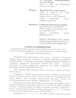 | Підгайний Олег Станіславович, заступник начальника Головного управління міжнародно-правового співробітництва- начальник управління міжнародно-правової допомоги та екстрадиції Генпрокуратури України | 07.07.2016 | 41238/16 |