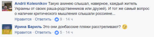 "Досить і того, що українські військові обстрілюють Донбас. Літаки бомблять пляжі з дітьми, будинки, вулиці. Спалюють масово людей... при схваленні так званої інтелігенції", - написав прихильник "русского міру".