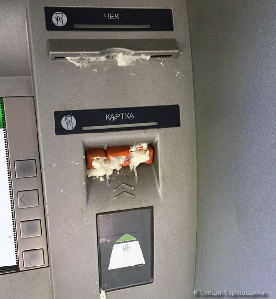 В центре Харькова банкоматы залили монтажной пеной