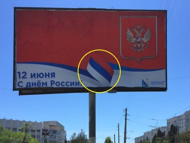 21. Оккупанты поздравили жителей захваченного Севастополя "с днем россии" перевернутыми флагами по всему городу, которые изображены на билбордах. Кроме того, на некоторых билбордах изображена карта россии без Крыма. У ваты неистово горит. Ищут "провокаторов".