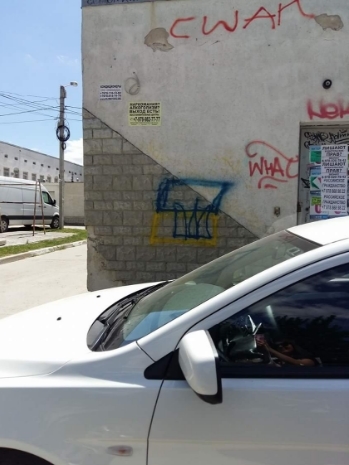 22. В Симферополе неизвестные нарисовали Тризуб и флаг Украины.