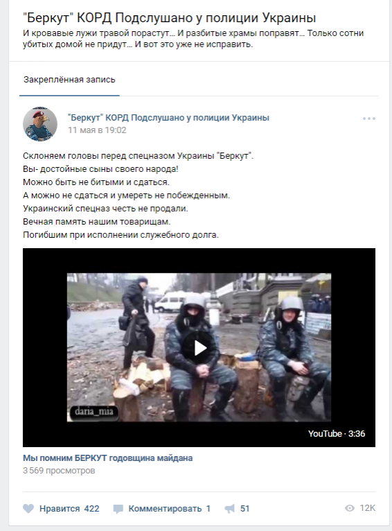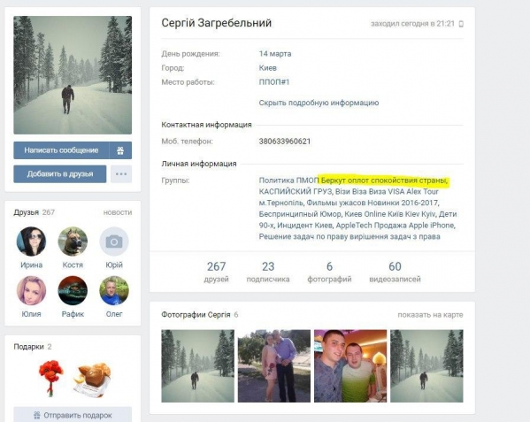 В VK Сергей Загребельный точно так же, как и его напарник Владислав Иоанно, состоит в известной группе "Беркут оплот спокойствия страны".
