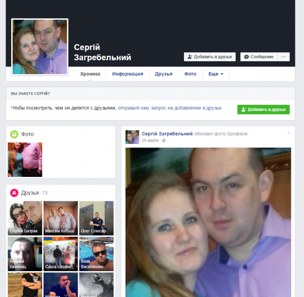 На скриншоте рядом с Сергеем Загребельным находится девушка, которая в своем статусе написала, что влюблена в него и в этом же статусе она отметила нынешний активный аккаунт Загребельного в VK.
