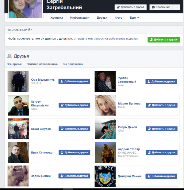 Среди его друзей в Facebook оказались и такие, которые не скрывают своего хорошего отношения к расформированному спецподразделению "Беркут" и даже ставят профильные картинки себе на аватарки.