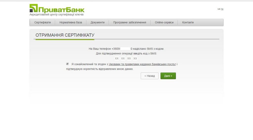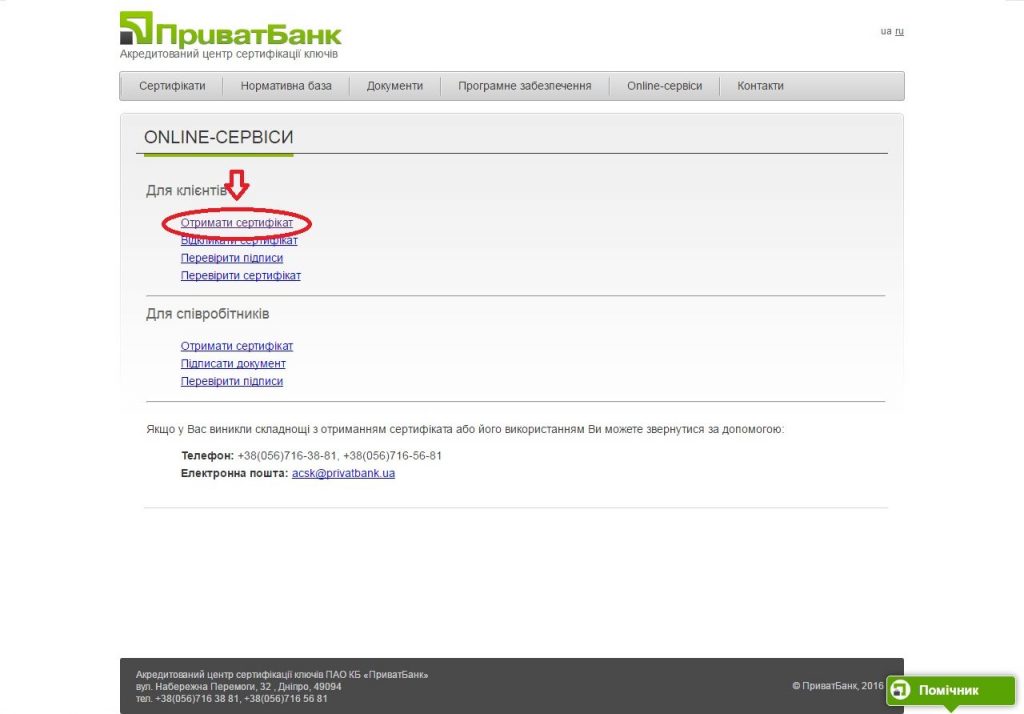 Тут ви маєте в полі «Для клієнтів» натиснути вкладку «Отримати сертифікат»