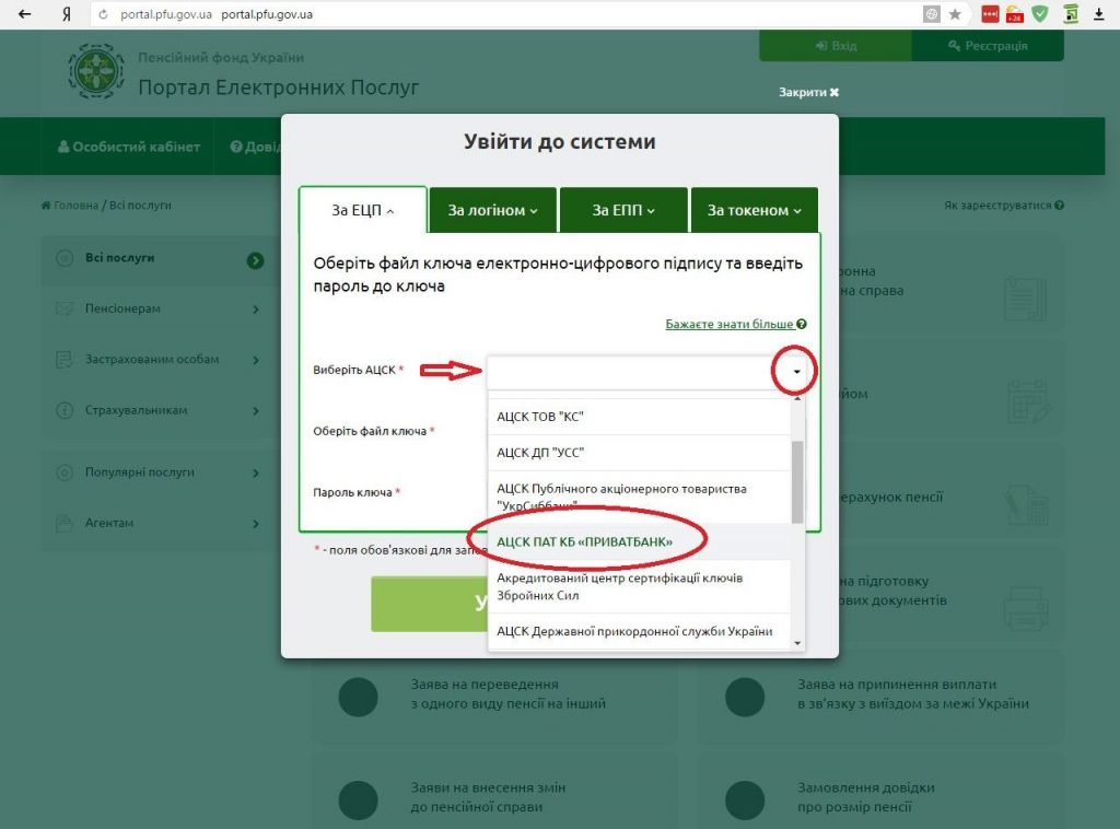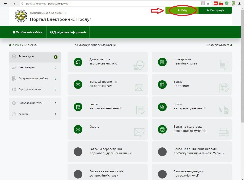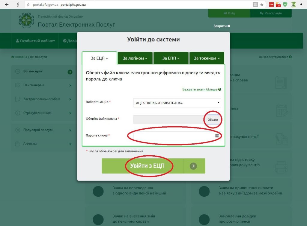 Тепер, коли у вас є електронний ключ, повертаємось до Порталу електронних послуг Пенсійного фонду України