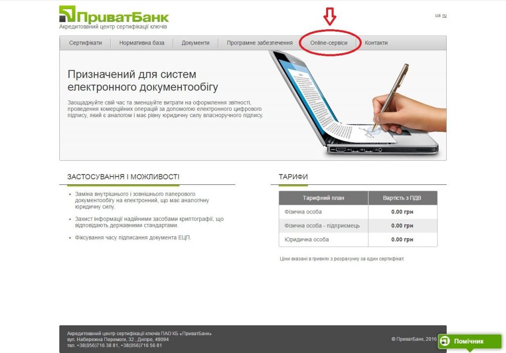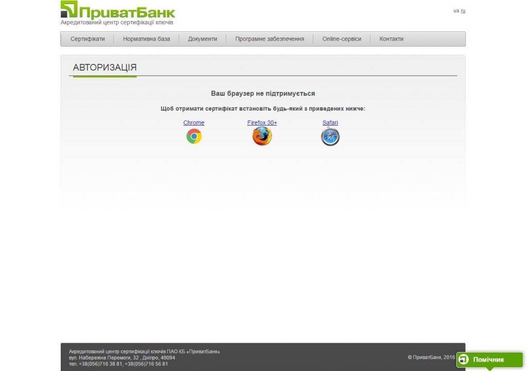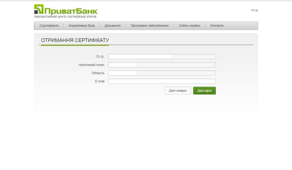 Заходьте на сайт, який називається «Акредитований центр сертифікації ключів ПриватБанка» за цим посиланням: