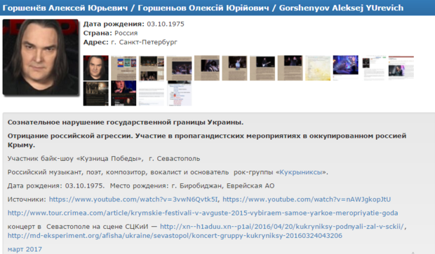 Несколько известных российских рокеров оказались в базе преступников украинского центра "Миротворец", известной как "Чистилище".