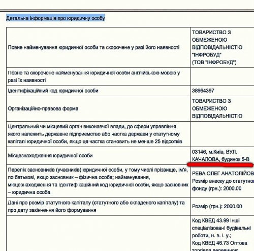 Впрочем, не только в Киеве. В 2015 году Парцхаладзе выбил для Глимбовского подряд в строительстве оборонительной полосы в зоне АТО, которую курировал (и оплачивал) Киевский облсовет и Киевская областная администрация: 40 км на отрезке между Попасной и Светлодарском, один из самых опасных и ответственных участков фронта. Тендер на постройку 16 укрепленных ДОТов и командных пунктов (стоимостью 26,46 миллионов гривен) «выиграла» некая фирма ООО «Инфробуд», чьим директором являлся Олег Рева. А потом стало известно, что господин Рева ранее занимал руководящую должность в «ООО «Альтис». Более того, ООО «Инфробуд» (с уставным капиталом аж в 2 тысячи гривен) была зарегистрирована по тому же адресу, что и когда-то ООО «Альтис», а теперь и «Альтис-Холдинг».