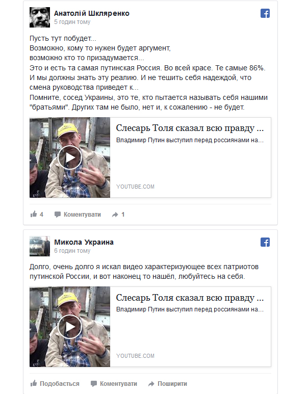 Видео, опубликованное на YouTube, весьма повеселило пользователей. На нем слесарь Толя из Екатеринбурга заявляет, что Россия на данный момент является "самой крутой страной в мире". Но после размышлений о внешней политике России оратор задается вопросом: "но почему люди живут так погано?".