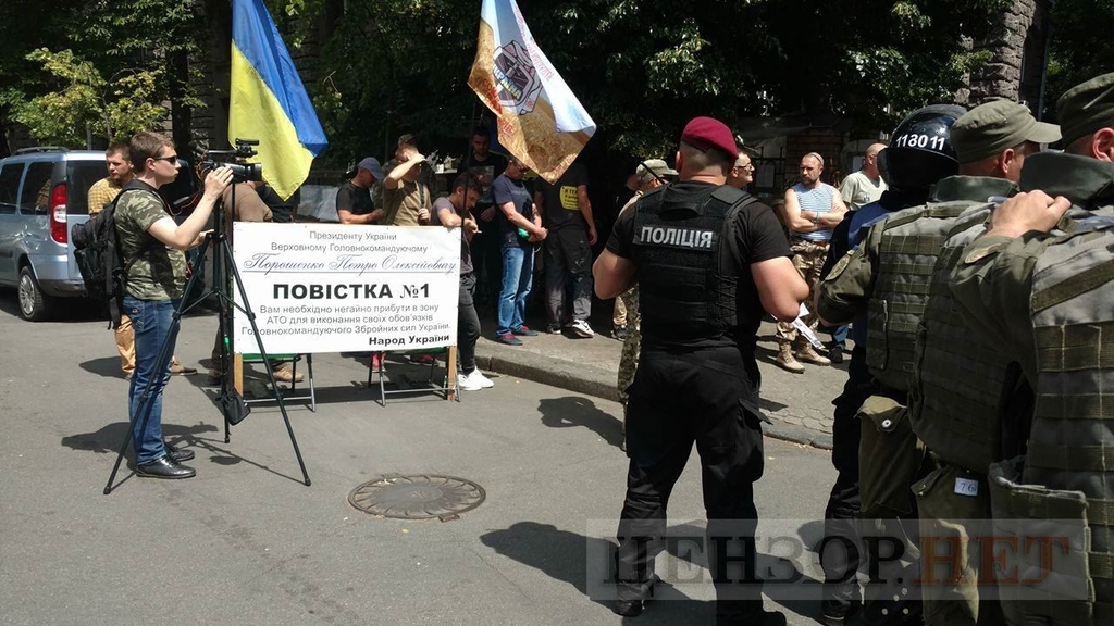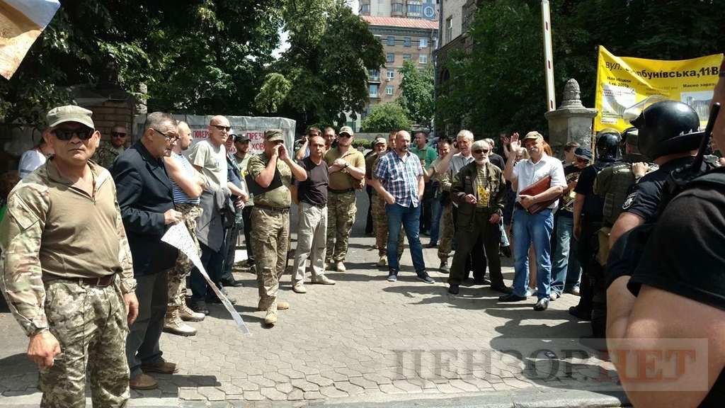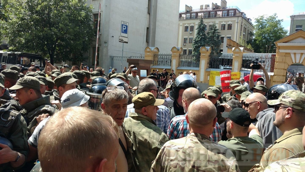 Под зданием Администрации президента произошли стычки правоохранителей с митингующими бойцами батальона "Айдар" во главе с народным депутатом Сергеем Мельничуком.