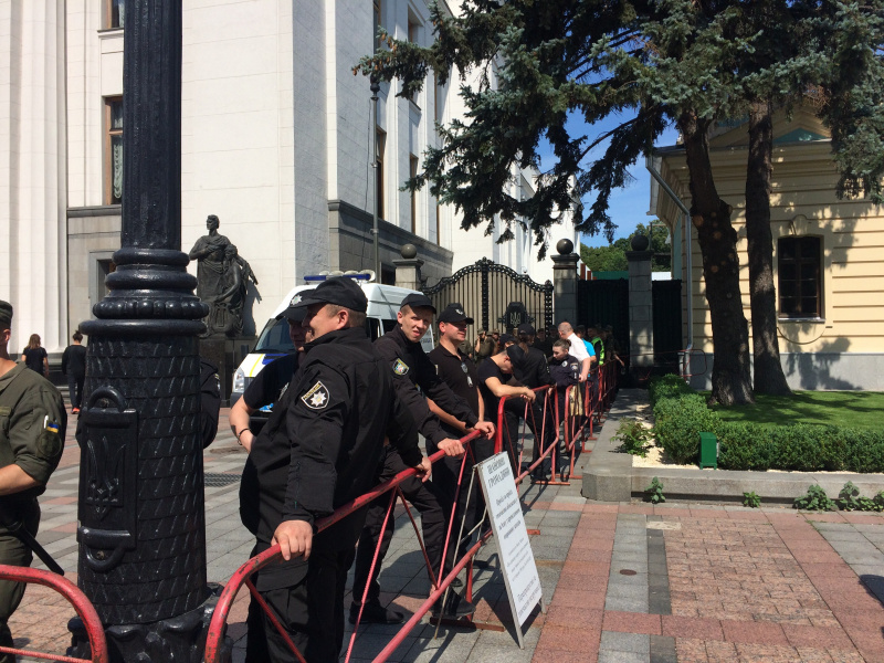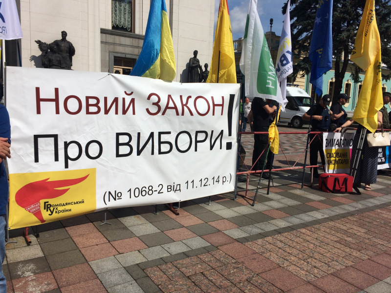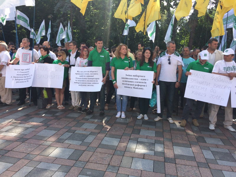 Возле здания Верховной Рады Украины на улице Грушевского проходит митинг в поддержку внесения изменений в избирательное законодательство.