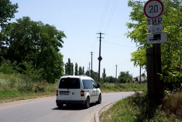Следующая неожиданность в паре километров от Рени. Знак, запрещающий двигаться дальнобою более 20 тонн весом на протяжении 3 км... А где объезд, куда поворачивать, не нарушая этот запретительный знак — никто не объясняет...