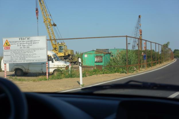 Кое-где завезены кучи гравия по обочинам, идет какая-то подготовка к ремонту. Но... На 300 километров — всего с десяток рабочих и около 1000 метров реально ремонтируемого дорожного полотна. ЭТОГО ОЧЕНЬ МАЛО! Тем более, что министр В. Омелян провозгласил и открытие этой обновленной дороги, и новой паромной переправы через Дунай уже в октябре 2017 года. Не похоже, чтобы это стало реальностью.