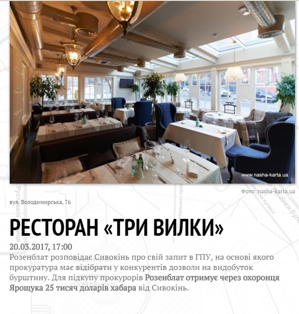 19 квітня: «Прокуратура через суд вимагає скасувати спецдозволи на видобуток бурштину на Житомирщині, видані без погодження обласної ради компаніям «Райт Солюшн», «Амбер Холдинг» та «Надра Галичини», - інформує Розенблат.