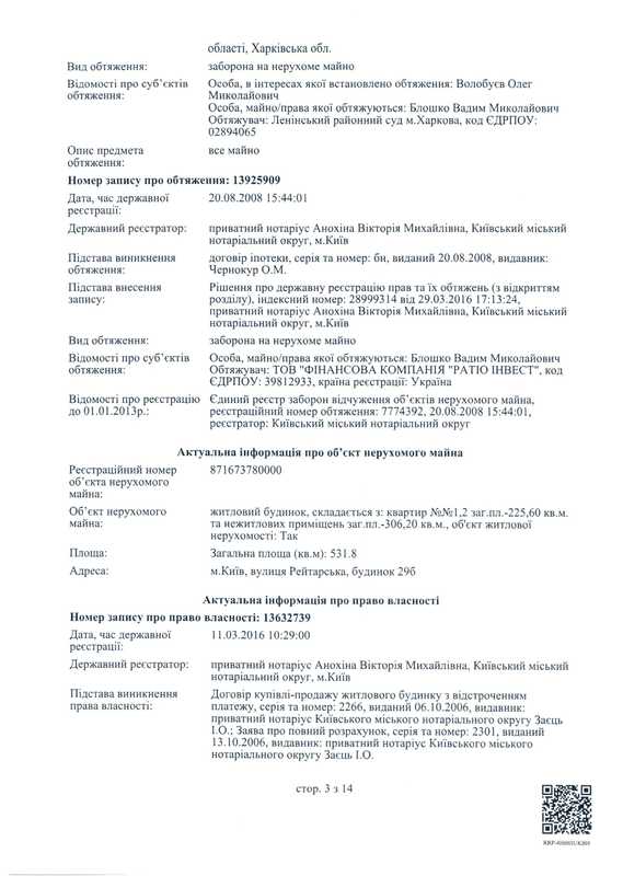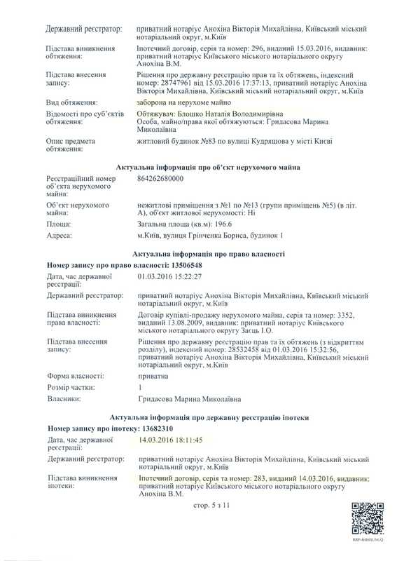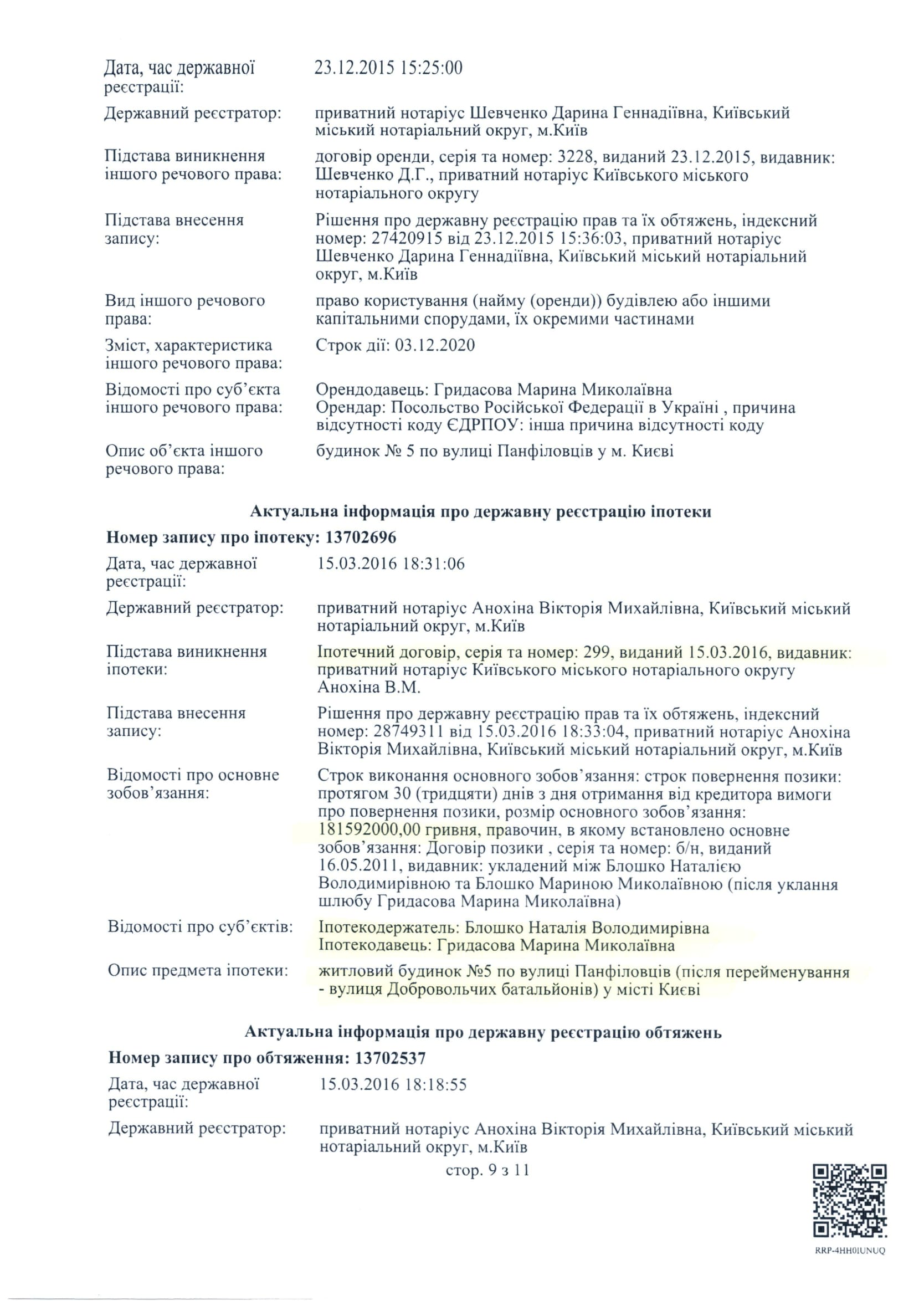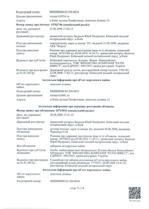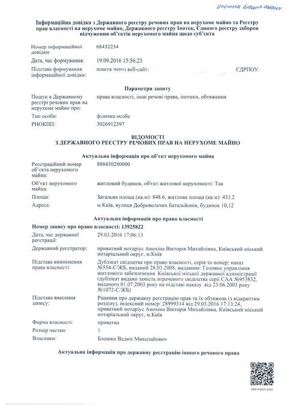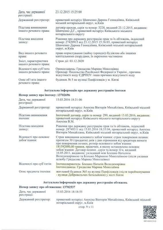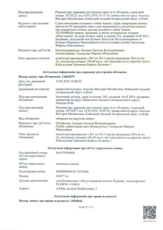 Что же пошло в этот фиктивный «залог»?! Жилой дом на 226 кв.м. и нежилых помещений 306 кв.м. по ул. Рейтарской в Киеве; квартира 40 кв. м по ул. Пушкинской в Киеве; квартира 122 кв.м на ул. Прорезной в Киеве; дом 657 кв. м. и земельный участок на ул. Кудряшова в Киеве; нежилые помещения на 197 кв. м на ул. Гринченко в Киеве; 7 соток земли и дом на 920 кв. м на ул. Панфиловцев (Добровольческих батальонов) в Киеве; 25 соток земли в г. Яремча Ивано-Франковской области.