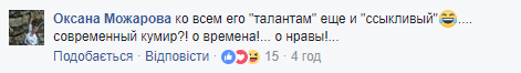 "Ко всем его "талантам" еще и "сс*кливый".... современный кумир?! О времена!... О нравы!" - написала Оксана Можарова.