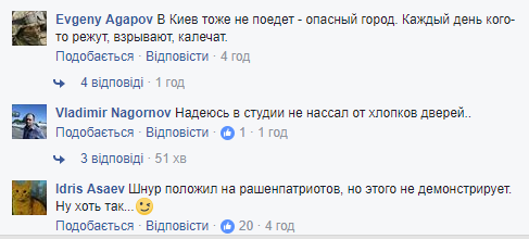 "В Киев тоже не поедет - опасный город. Каждый день кого-то режут, взрывают, калечат", - написал Евгений Агапов.