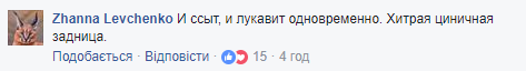 "И сс*т, и лукавит одновременно. Хитрая циничная задница", - написала Жанна Левченко.