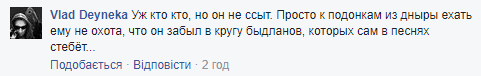 "Уж кто кто, но он не сс*т. Просто к подонкам из дныры ехать ему не охота, что он забыл в кругу быдланов, которых сам в песнях стебел", - отметил Влад Дейнека.