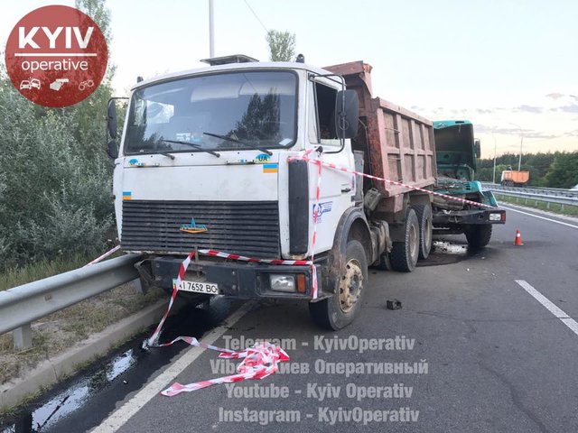 В Киеве молодого водителя раздавило между двумя грузовиками