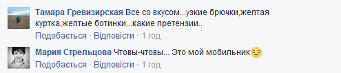 На снимке Саакашвили одет в желтую куртку, которая ему явно не по размеру, а также в обтягивающие штаны.