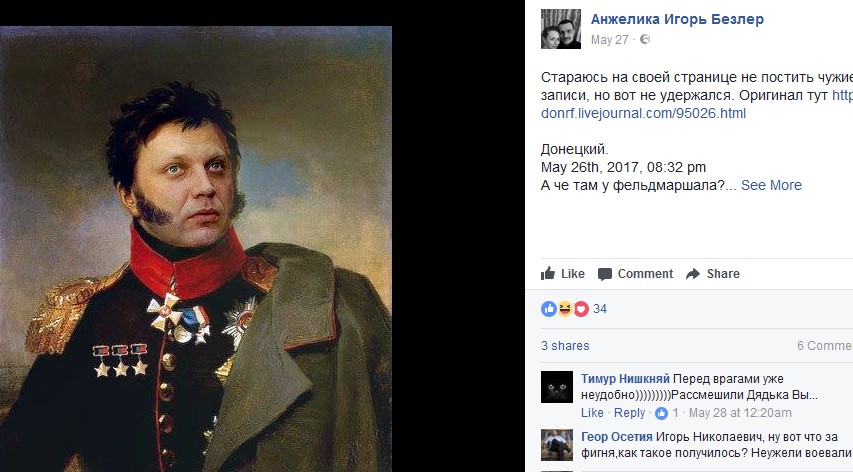 Безлер («Бес») ведет переписку со страницы своей жены и любит поглумиться над Захарченко, которого называет дегенералом.