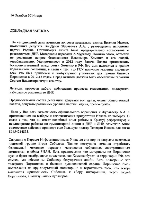 Так, среди документов есть фото паспорта бывшего лидера "ДНР" Дениса Пушилина и служебные записки с грифом "совершенно секретно". В одной из них речь идет о создании информагентства для "дискредитации" оппонента, а также сбора компромата на украинских политиков, в частности - нового главу Луганской ОГА Геннадия Москаля. А возглавляет эту информационную войну не кто иной, как Егор Соболев.